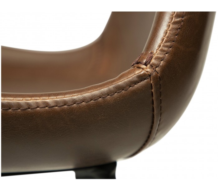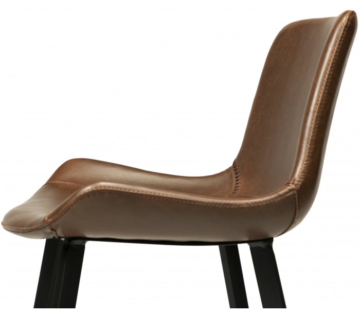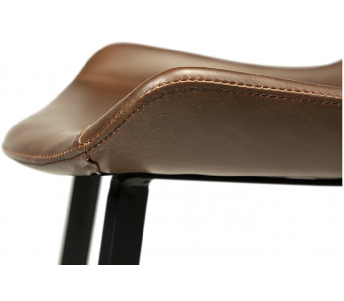 Barstol i et design fremstillet med sæde i vintage kakao kunstlæder og ben i sortlakeret metal. Barstolen måler 101 cm i højden over ryggen og 75 cm i siddehøjde.