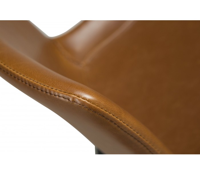 Barstol i et design fremstillet med sæde i vintage lysebrun kunstlæder og ben i sortlakeret metal. Barstolen måler 91 cm i højden over ryggen og 65 cm i siddehøjde.
