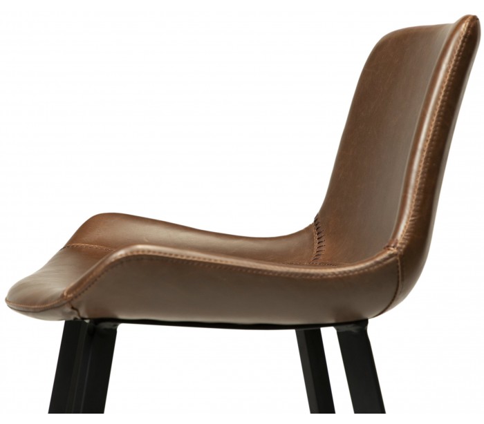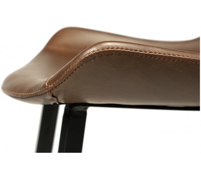 Barstol i et design fremstillet med sæde i vintage kakao kunstlæder og ben i sortlakeret metal. Barstolen måler 91 cm i højden over ryggen og 65 cm i siddehøjde.