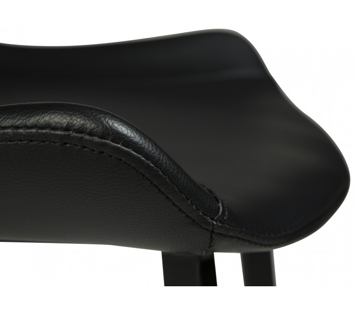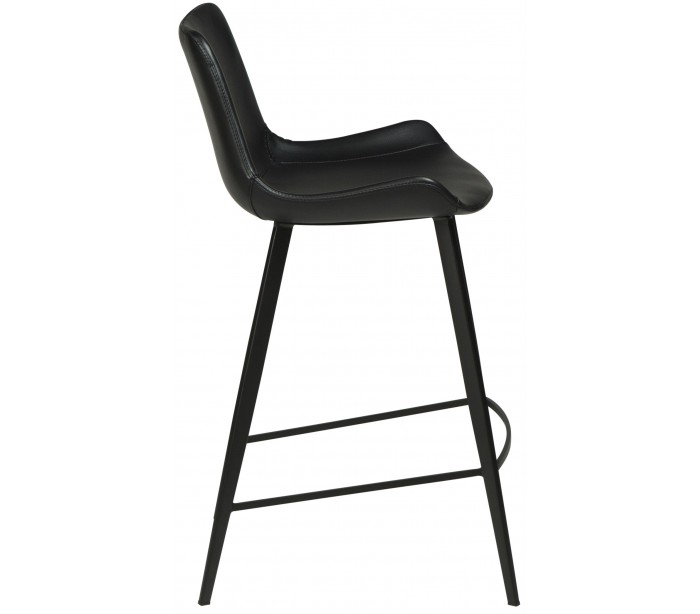 Barstol i et design fremstillet med sæde i sort kunstlæder og ben i sortlakeret metal. Barstolen måler 91 cm i højden over ryggen og 65 cm i siddehøjde.