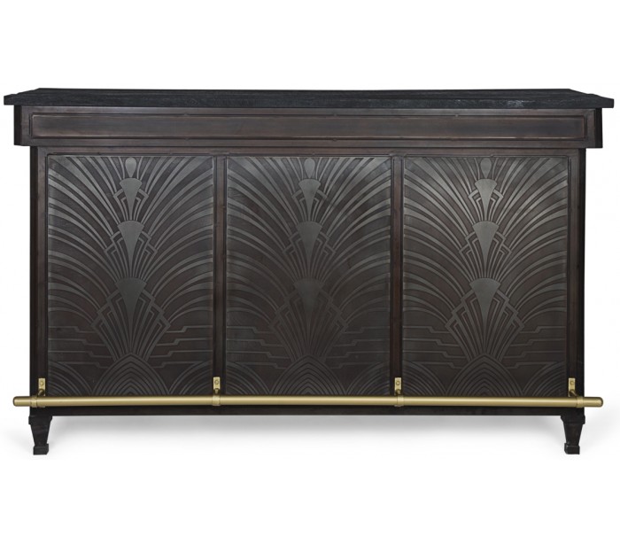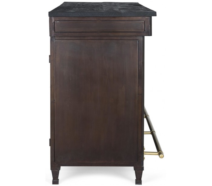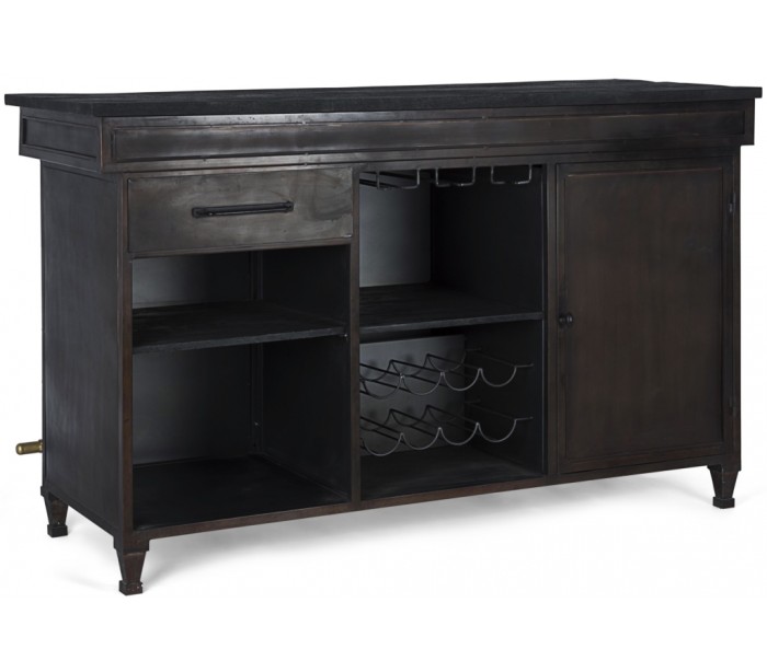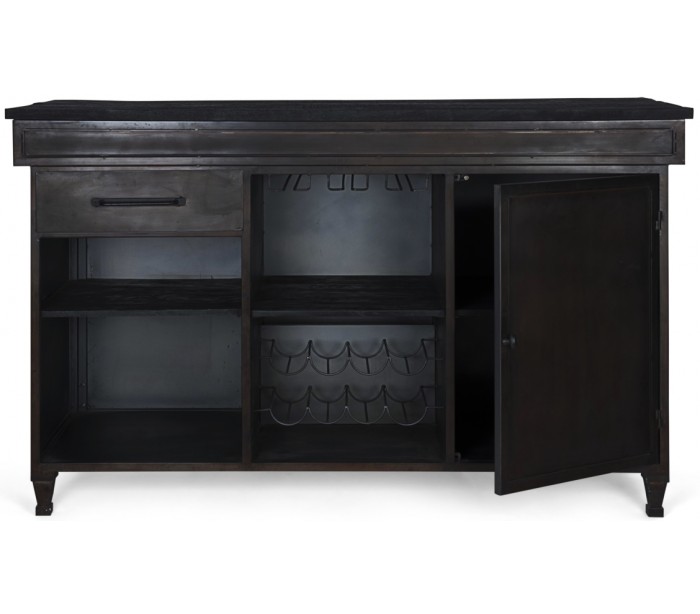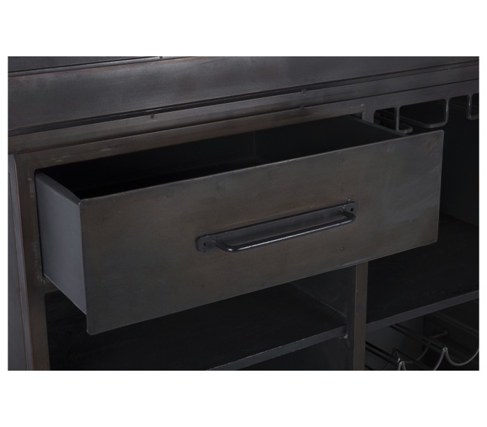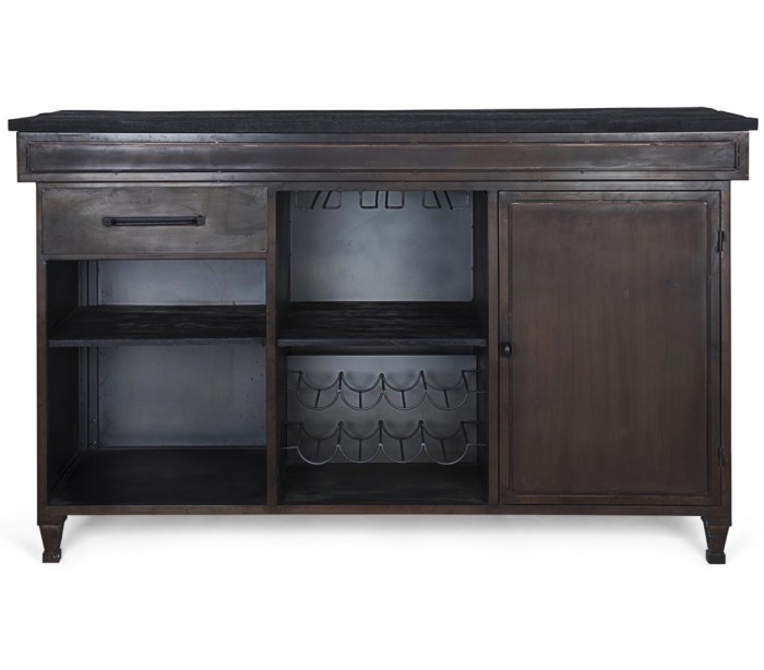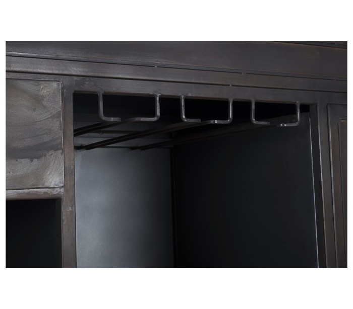 Bardisk i et rustikt design, fremstillet i rustik lakeret mangotræ og stål. Bardisken måler 109 cm i højden og 172 x 64 cm i bredde og dybde. Bemærk venligst, at lakeringen/maling har "slidmærker" rundt omkring, som en del af designet.