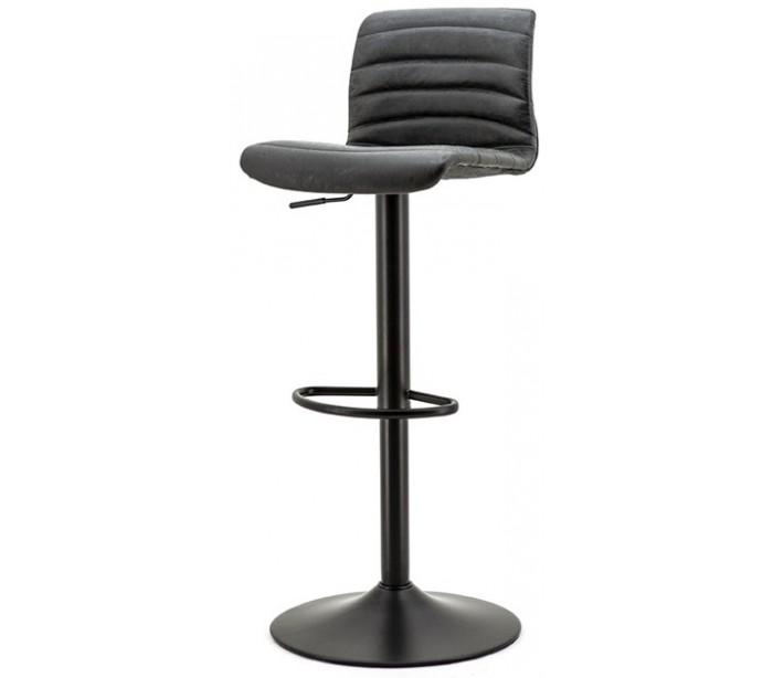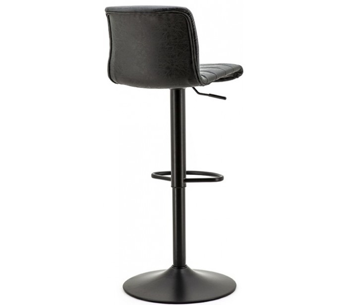Barstol i et moderne design, fremstillet i vintage sort kunstlæder og med stel i sortlakeret metal. Stolen måler 86 - 107 cm i højden og med siddehøjde på 61 - 82 cm.