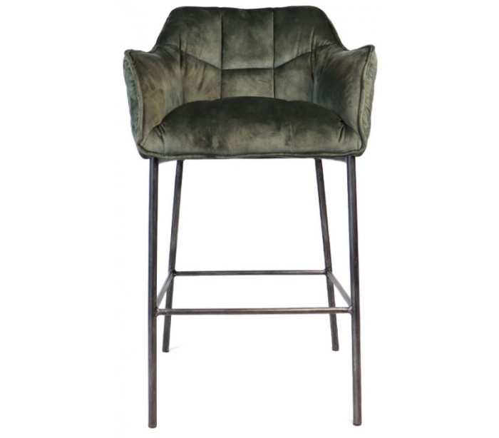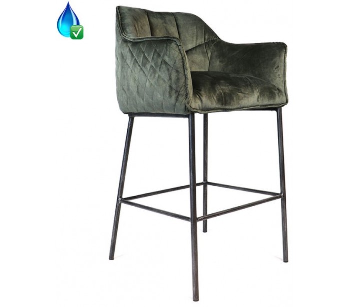 Jayron barstol i et moderne design, fremstillet med sæde i grøn velour og ben i sortlakeret metal. Barstolen måler 110 cm i højden over ryggen og med siddehøjde på 82 cm. Velouren er vandafvisende og med martindale 100.000, som gør stolen særligt anvendelig til restaurationer/spisesteder.