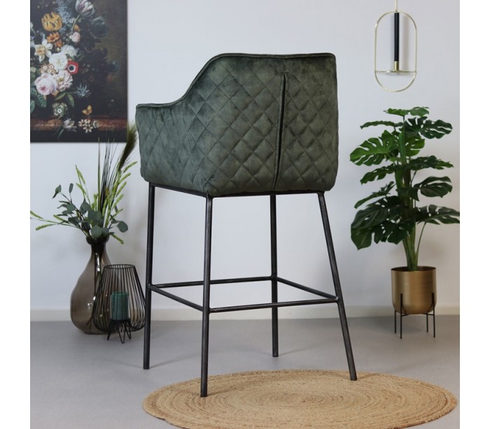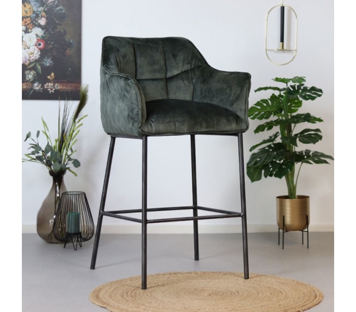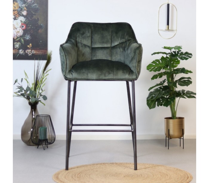 Jayron Barstol i velour H110 cm - Sort/Grøn