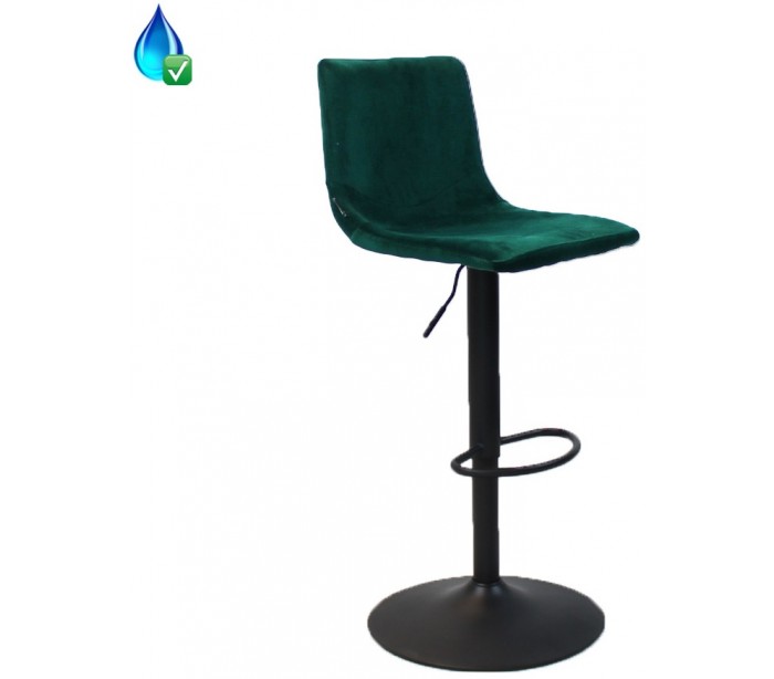 Frenkie barstol i et moderne design, fremstillet med sæde i grøn velour og ben i sortlakeret metal. Barstolen måler 90 - 110 cm i højden over ryggen og med siddehøjde på 59 - 79 cm. Højden justeres via håndtag under sæde. Velouren er vandafvisende og med martindale 70.000, som gør stolen særligt anvendelig til restaurationer/spisesteder.