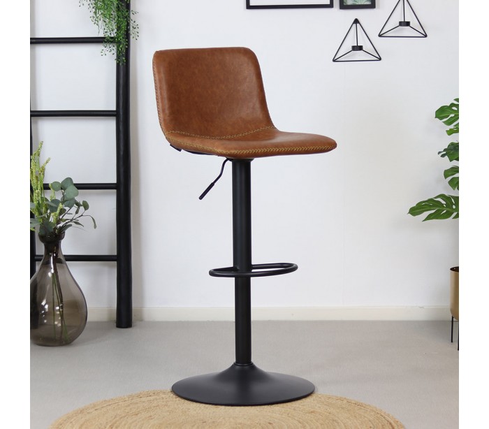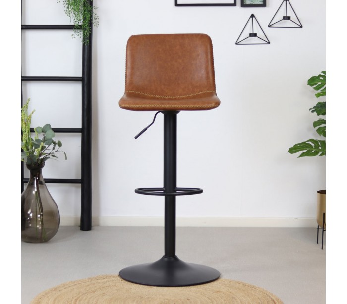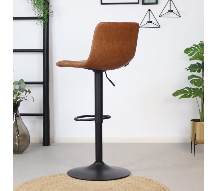 Tex Barstol i øko-læder H88 - 110 cm - Sort/Cognac