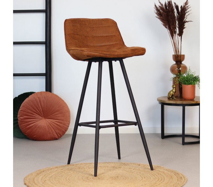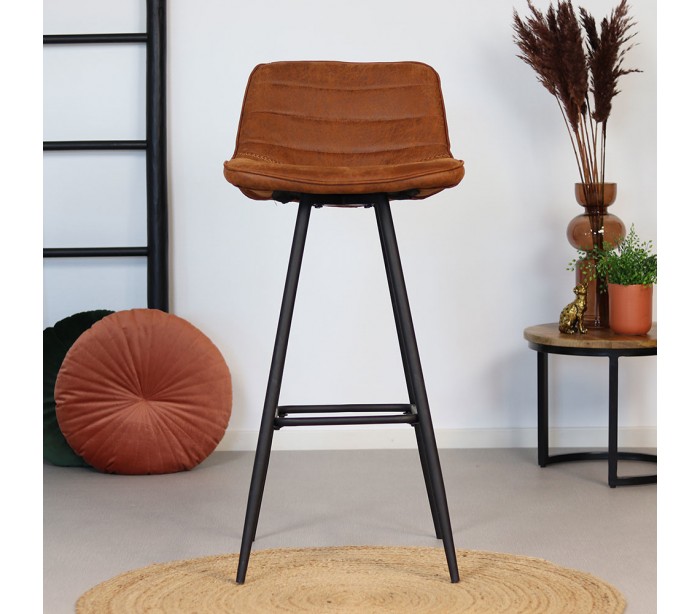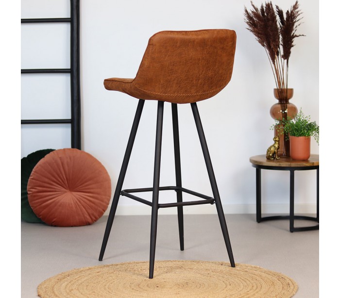 Jackson barstol i et design fremstillet i cognac øko-læder (30% Polyester/70% Læder) og ben i sortlakeret metal. Barstolen måler 101 cm i højden over ryggen og med siddehøjde på 76 cm. Beklædning er vandafvisende og med martindale 45.000, som gør stolen særligt anvendelig til restaurationer/spisesteder.