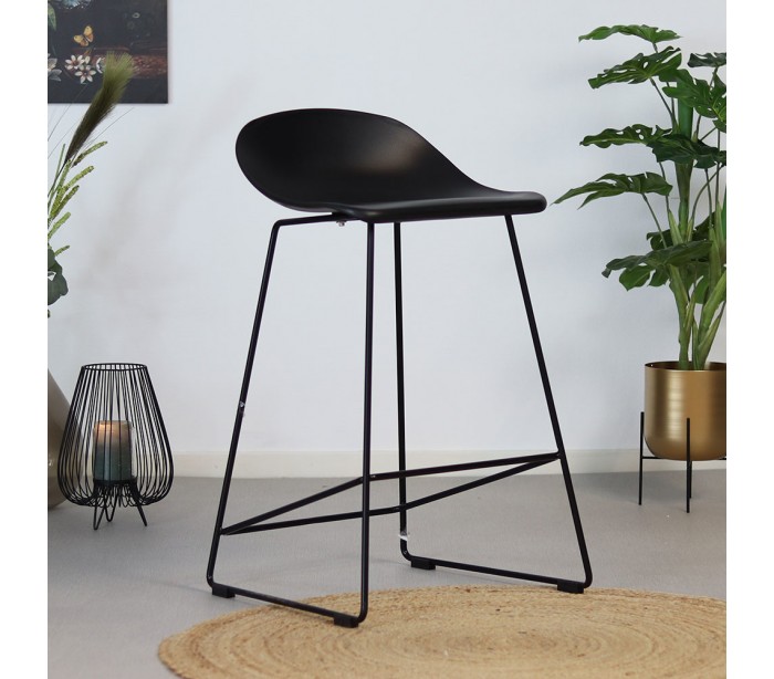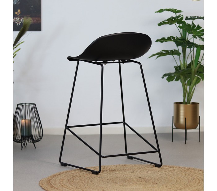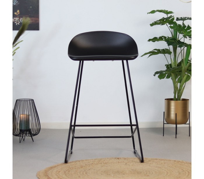 Erica barstol i et design fremstillet i sort polypropylen og ben i sortlakeret metal. Barstolen måler 79 cm i højden over ryggen og med siddehøjde på 66 cm.
