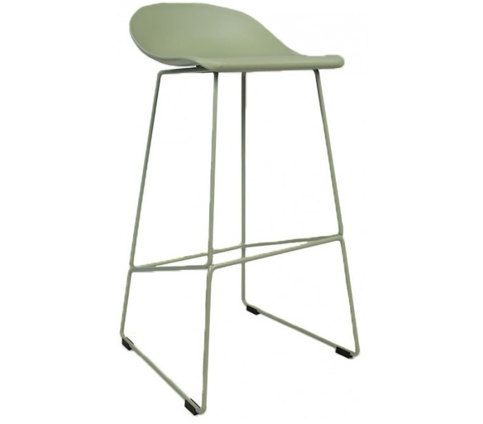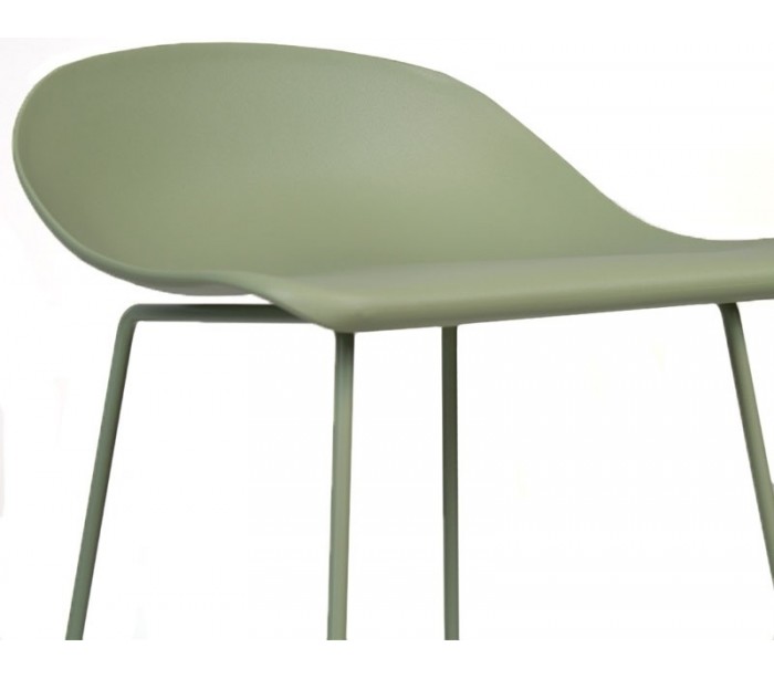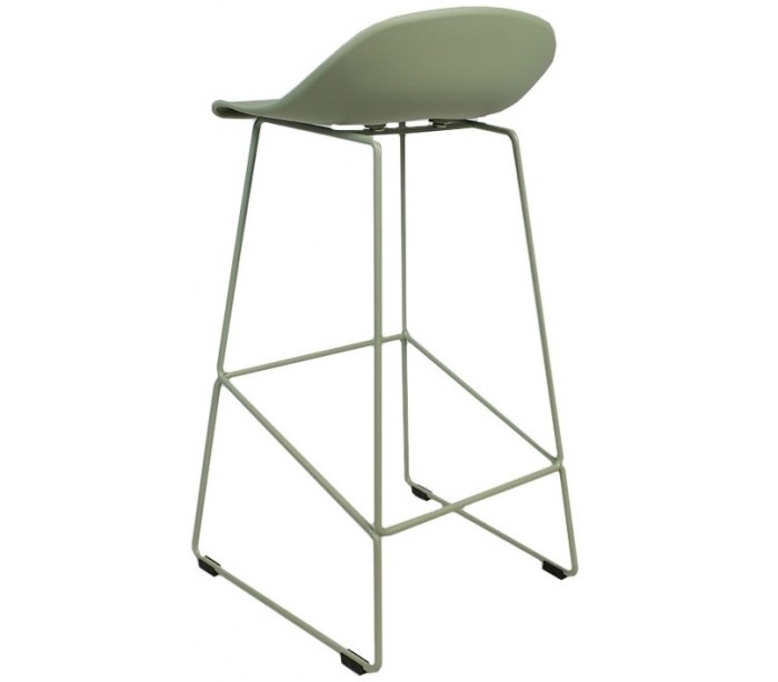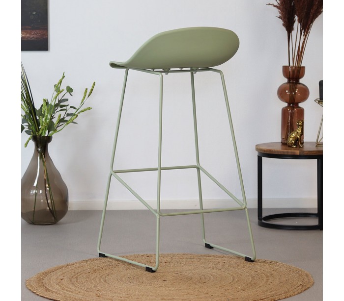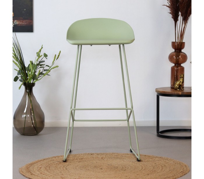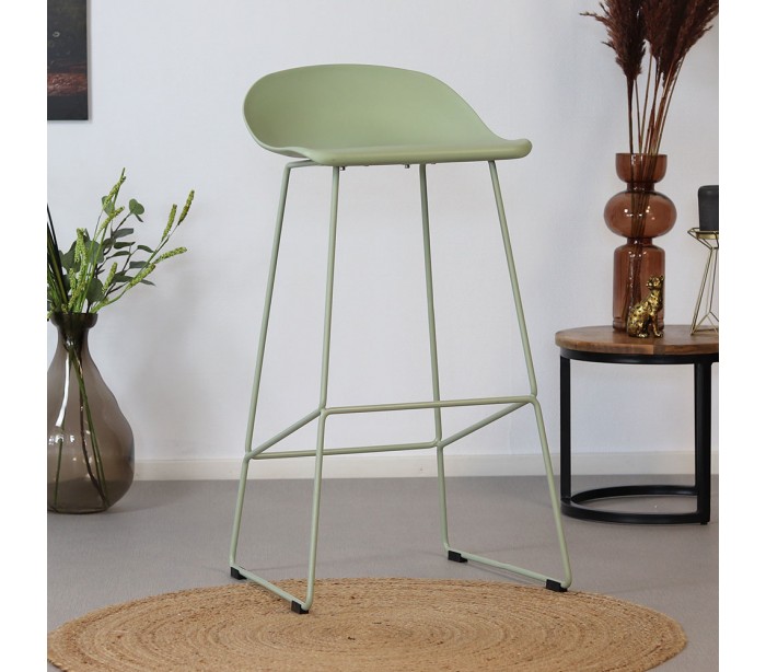 Erica barstol i et design fremstillet i mintgrøn polypropylen og ben i mintgrønlakeret metal. Barstolen måler 89 cm i højden over ryggen og med siddehøjde på 76 cm.