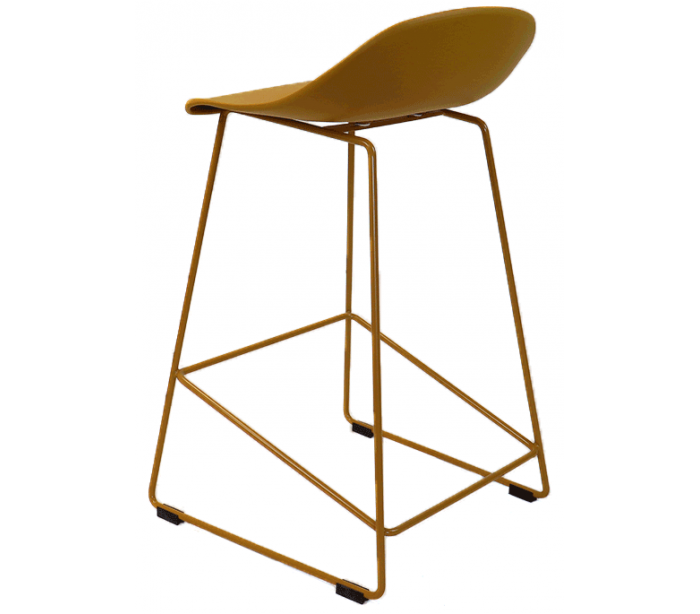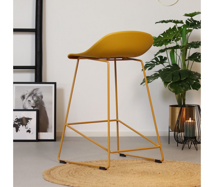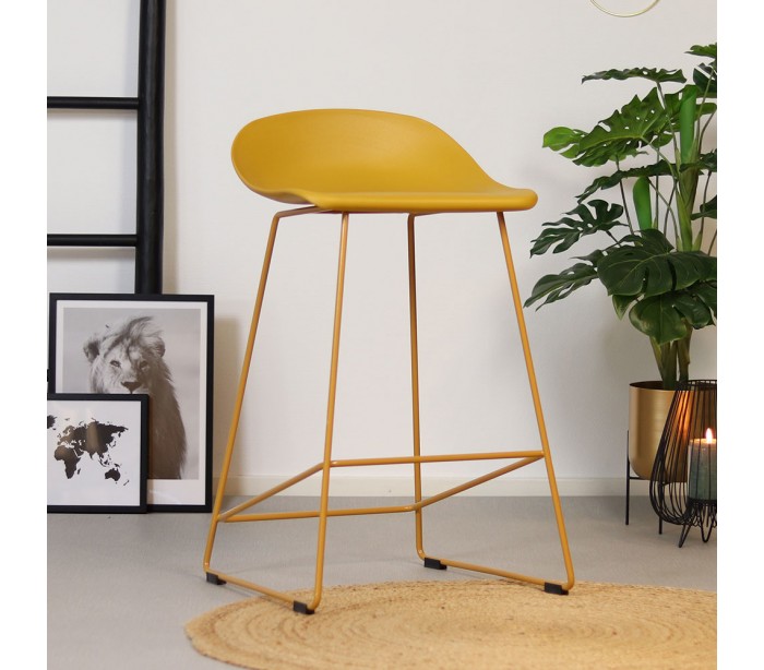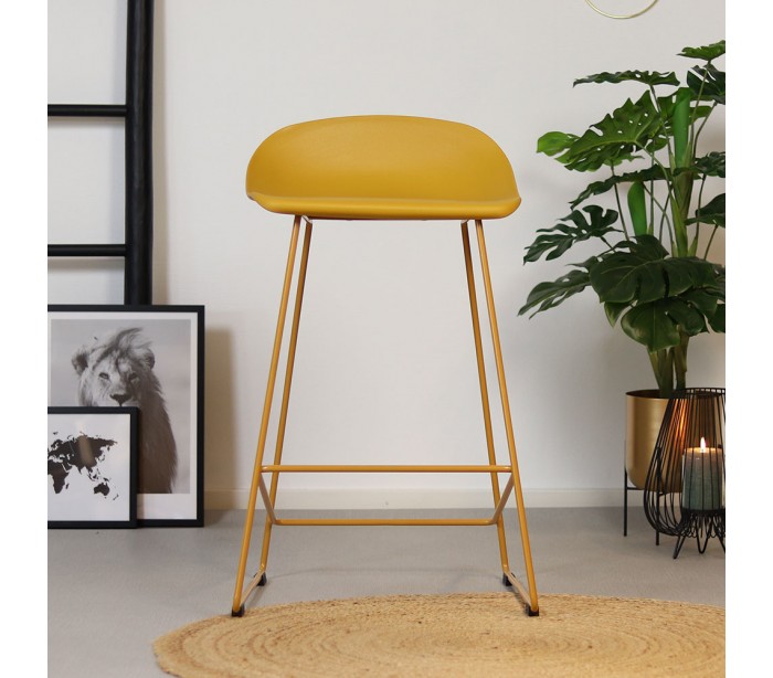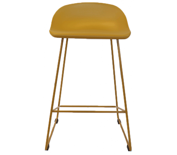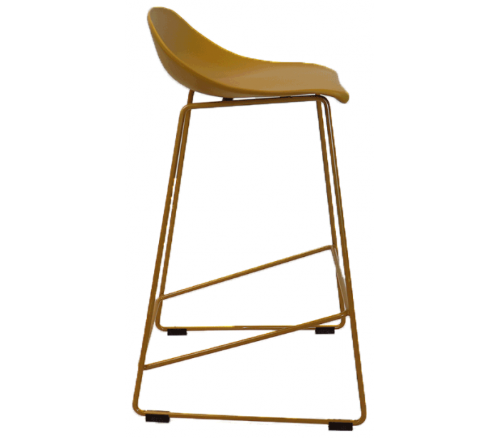 Erica barstol i et design fremstillet i gul polypropylen og ben i gullakeret metal. Barstolen måler 79 cm i højden over ryggen og med siddehøjde på 66 cm.
