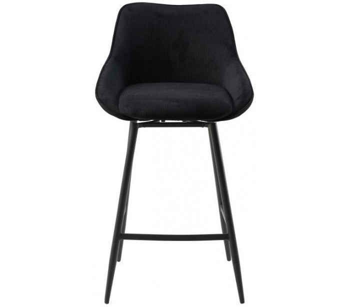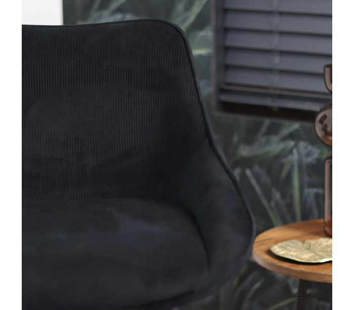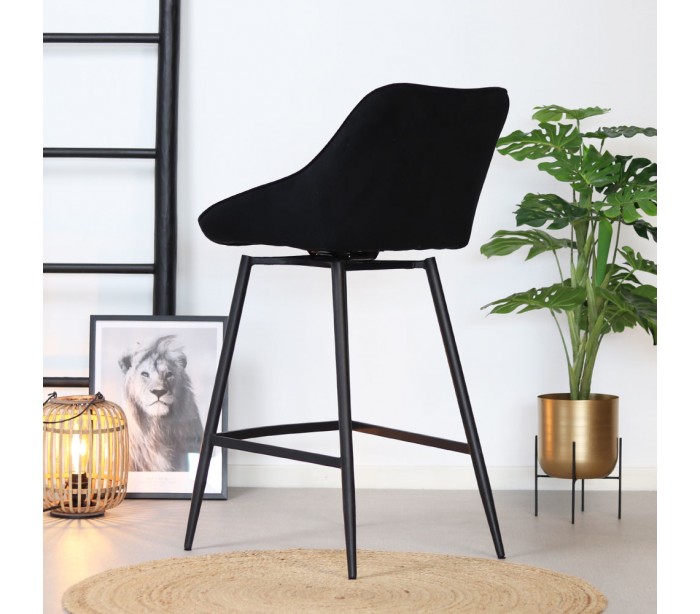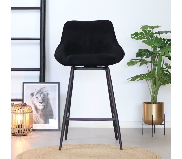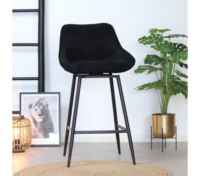 Luna rotérbar barstol i et moderne design, fremstillet med sæde i sort ripcurl (bølget velour) og stel i sortlakeret metal. Stolen måler 96 cm i højden over ryggen og med siddehøjde på 70 cm. Betrækket er med martindale 40.000 og er vandafvisende, som gør stolen særligt anvendelig til restaurationer/spisesteder.