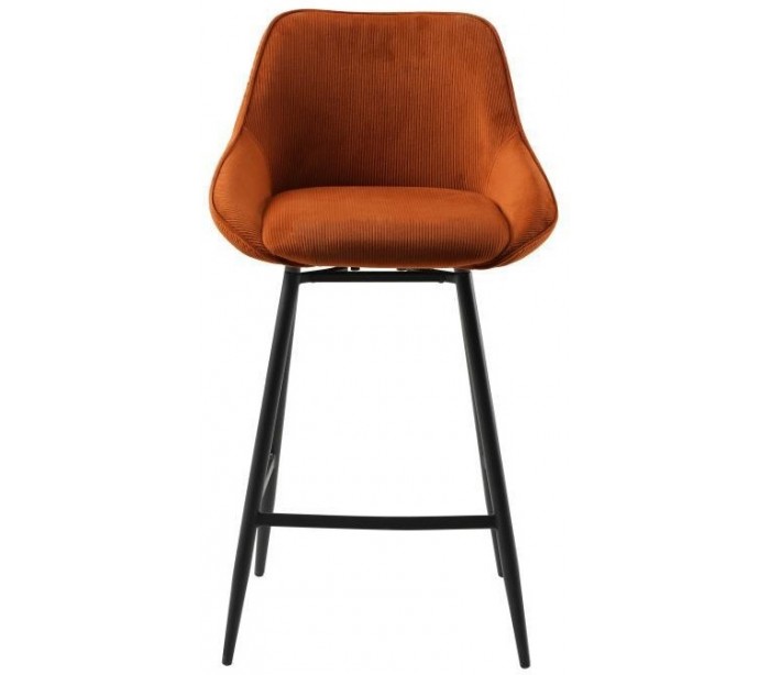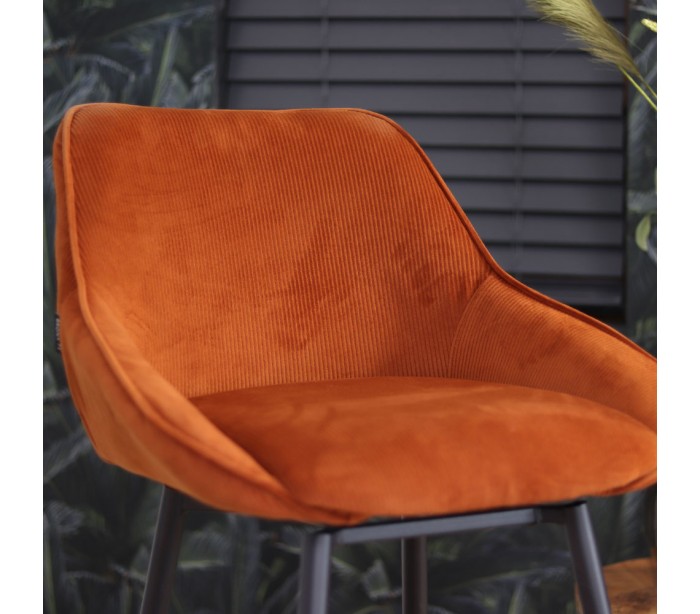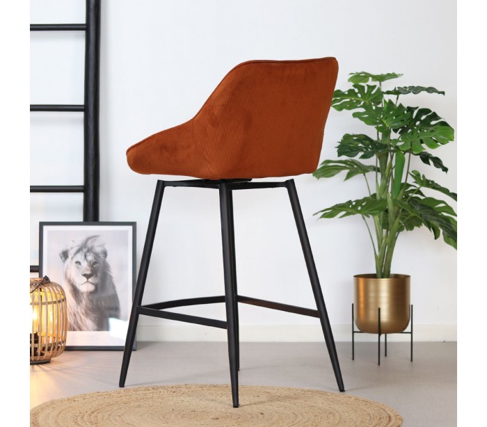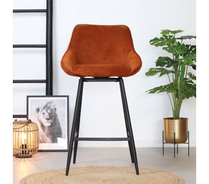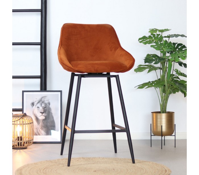 Luna rotérbar barstol i et moderne design, fremstillet med sæde i kobberfarvet ripcurl (bølget velour) og stel i sortlakeret metal. Stolen måler 96 cm i højden over ryggen og med siddehøjde på 70 cm. Betrækket er med martindale 40.000 og er vandafvisende, som gør stolen særligt anvendelig til restaurationer/spisesteder.
