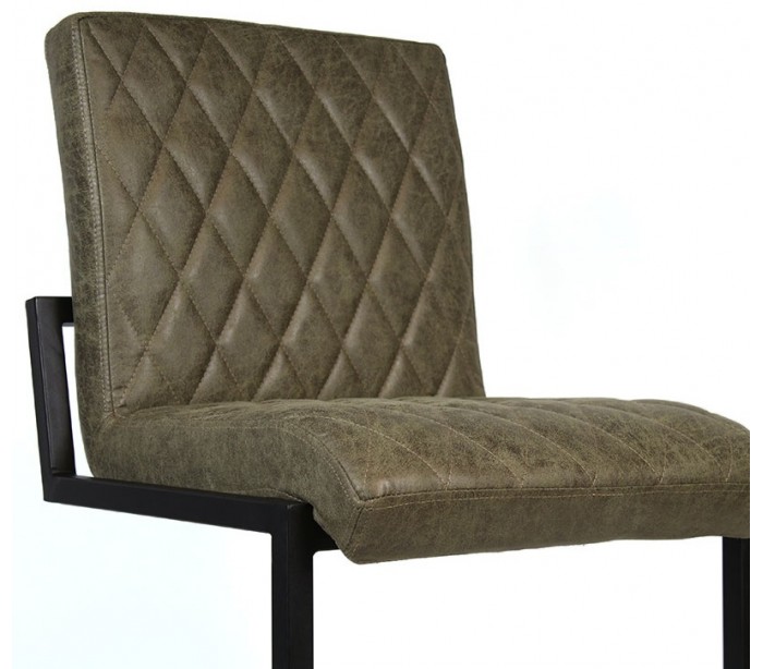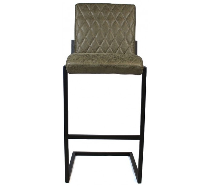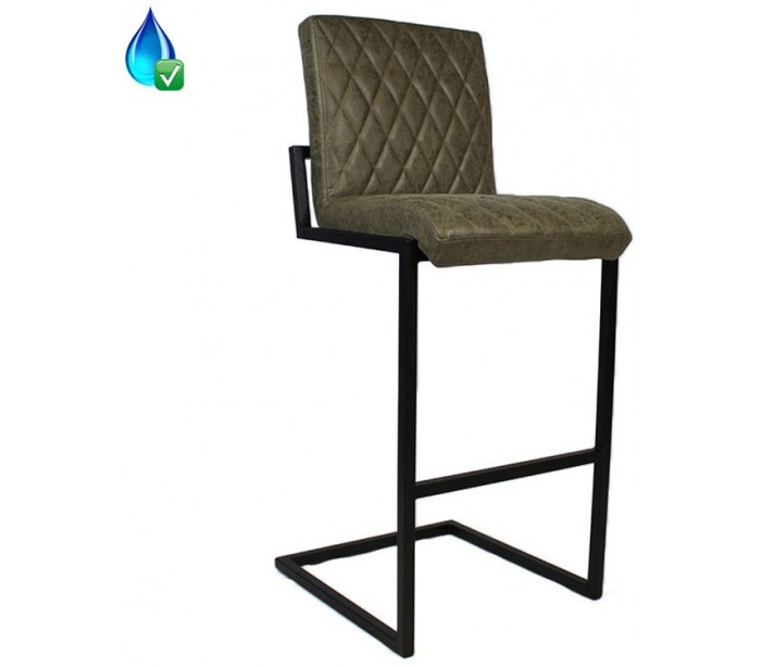 Diamond barstol i et design fremstillet i olivengrøn øko-læder (30% Polyester/70% Læder) og ben i sortlakeret metal. Barstolen måler 113 cm i højden over ryggen og med siddehøjde på 79 cm. Beklædning er vandafvisende og med martindale 45.000, som gør stolen særligt anvendelig til restaurationer/spisesteder.