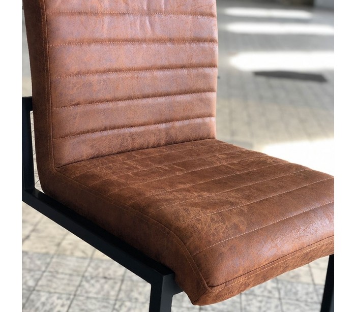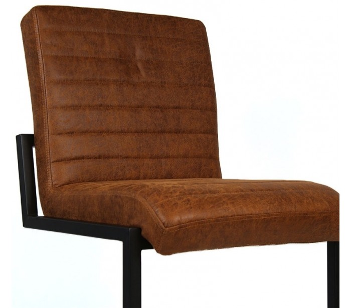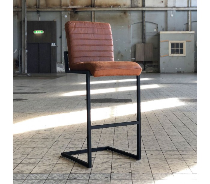 Block barstol i et design fremstillet i cognac øko-læder (30% Polyester/70% Læder) og ben i sortlakeret metal. Barstolen måler 113 cm i højden over ryggen og med siddehøjde på 79 cm. Beklædning er vandafvisende og med martindale 45.000, som gør stolen særligt anvendelig til restaurationer/spisesteder.