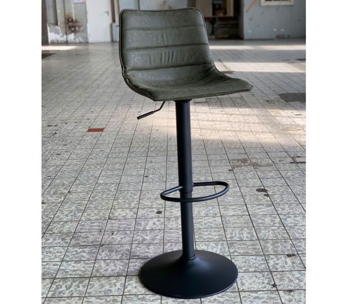 Boston barstol i et design fremstillet i olivengrøn øko-læder (30% Polyester/70% Læder) og ben i sortlakeret metal. Barstolen måler 82 - 110 cm i højden over ryggen og med siddehøjde på 60 - 82 cm. Højden justeres via håndtag under sæde. Beklædning er vandafvisende og med martindale 45.000, som gør stolen særligt anvendelig til restaurationer/spisesteder.