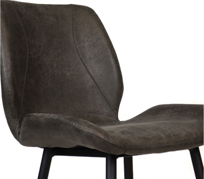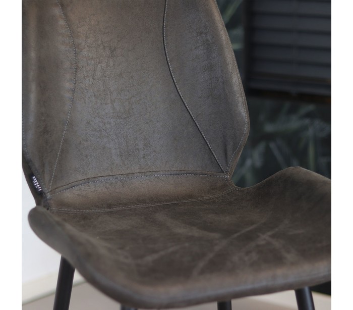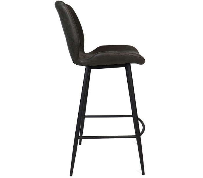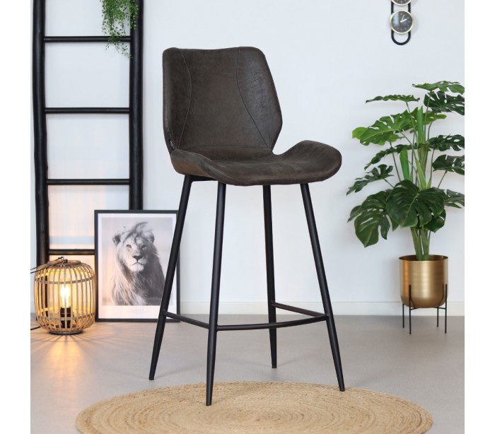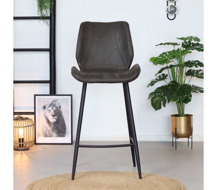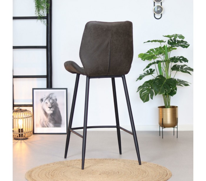 Barrel barstol i et moderne design, fremstillet med sæde i antracit øko-læder (30% Polyester/70% Læder) og ben i sortlakeret metal. Barstolen måler 104 cm i højden over ryggen og med siddehøjde på 69 cm. Læderet er vandafvisende og med martindale 45.000, som gør stolen særligt anvendelig til restaurationer/spisesteder.