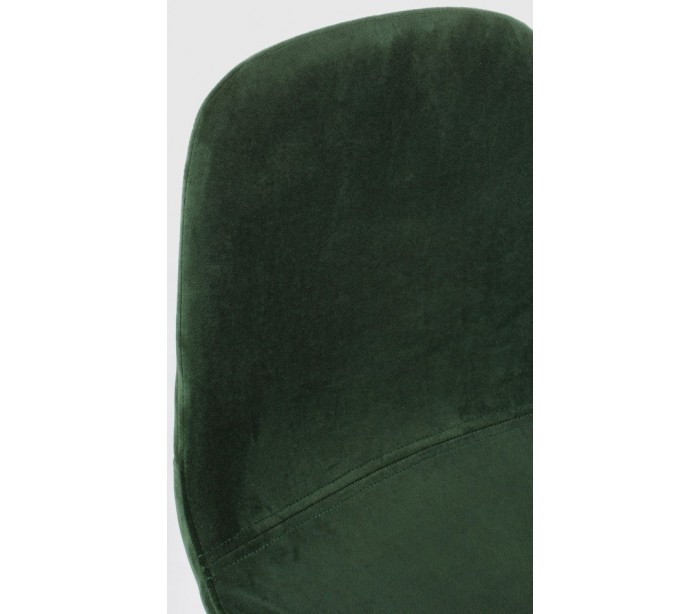 Barstol i et design af mørkegrøn velour og ben i sortlakeret metal. Barstolen er med en højde på 103 cm over ryggen og med siddehøjde på 76 cm.