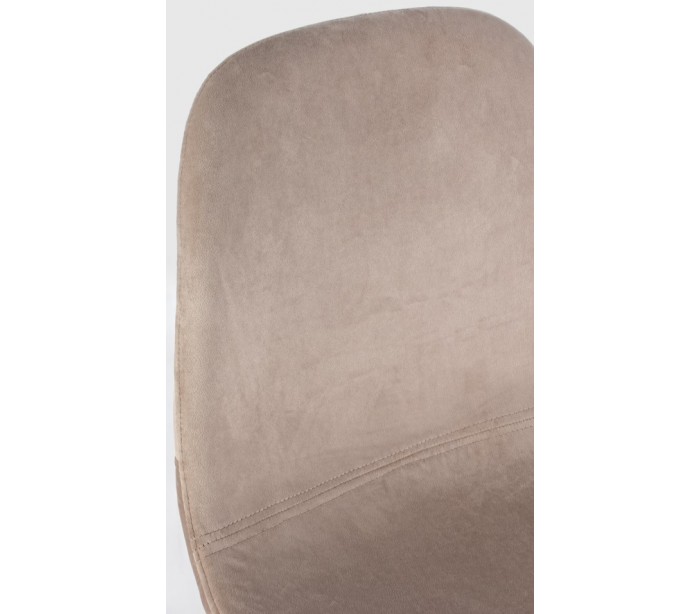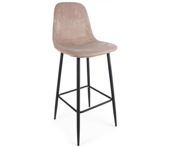 Barstol i et design af taupefarvet velour og ben i sortlakeret metal. Barstolen er med en højde på 103 cm over ryggen og med siddehøjde på 76 cm.