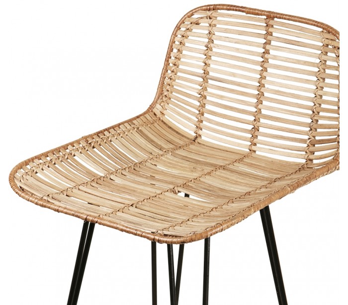 Barstol i rattan og metal H89 cm - Sort/Natur