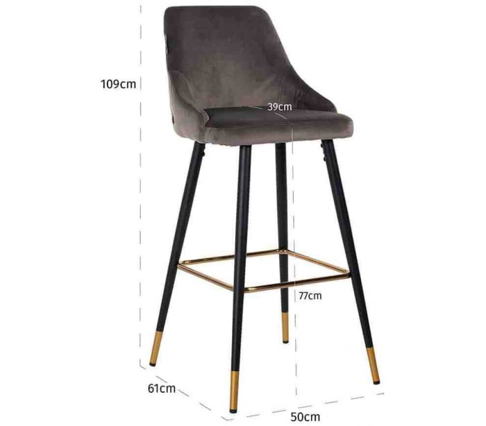 Imani barstol i velour H109 cm - Sort/Stengrå