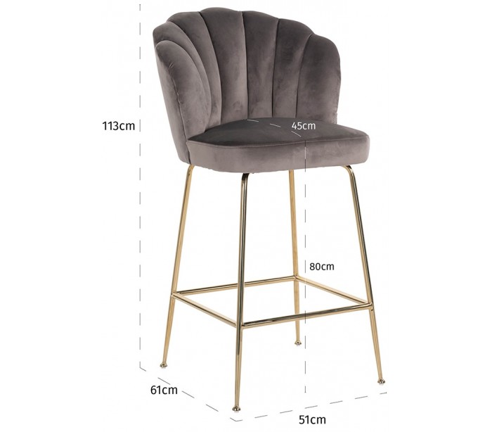 Pippa barstol i velour H113 cm - Guld/Stengrå