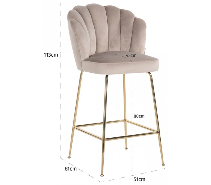 Barstol i et design fra hollandske Richmond Interiors. Barstolen er fremstillet i velour og med stel i guldfarvet metal. Barstolen måler 113 cm i højden over ryggen og 51 x 61 cm i bredde og dybde.