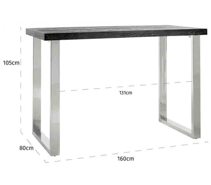 Barbord i et design fra hollandske Richmond Interiors. Bordet er fremstillet i sortbejset egetræ og sølvlakeret rustfri stål. Barbordet måler 160 x 80 cm i bredde og dybde og 105 cm i højden.