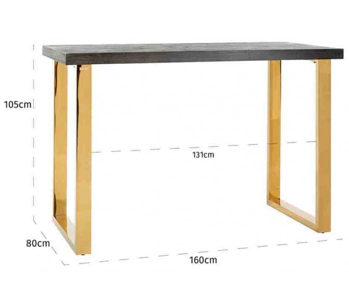 Barbord i et design fra hollandske Richmond Interiors. Bordet er fremstillet i sortbejset egetræ og guldfarvet rustfri stål. Barbordet måler 160 x 80 cm i bredde og dybde og 105 cm i højden.