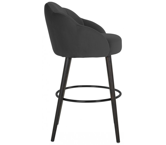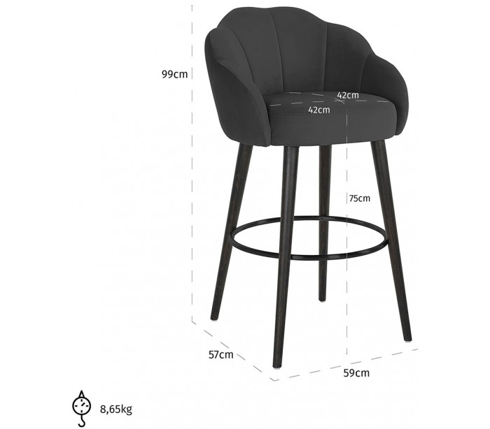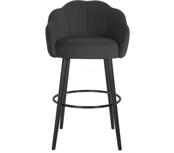 Barstol i et design fra hollandske Richmond Interiors. Stolen er fremstillet i antracitfarvet velour og med ben i sortlakeret bøgetræ med tydelige træstruktur. Stolen måler 99 cm i højden over ryggen og 59 x 57 cm i bredde og dybde.