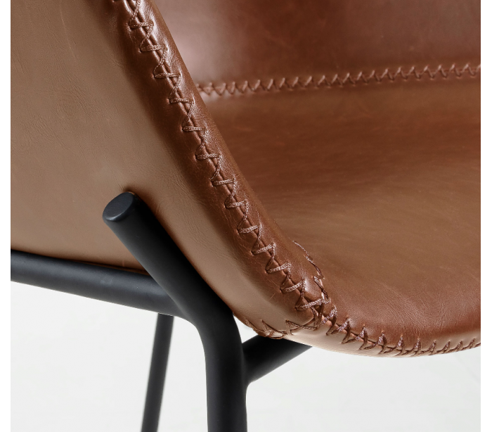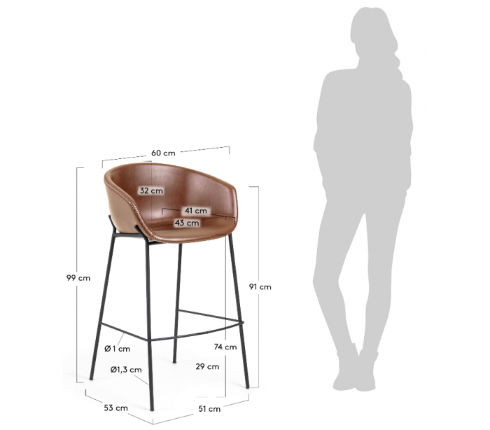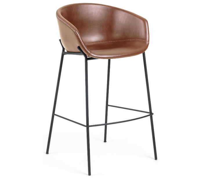 Barstol i et design fra LaForma. Barstolen er fremstillet i lysebrun PU-læder og med stel i sortlakeret stål og måler 99 cm i højden over ryggen og 60 x 53 cm i bredde og dybde.
