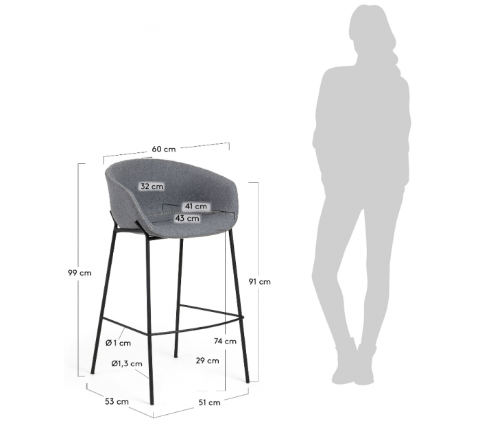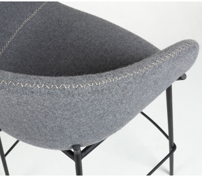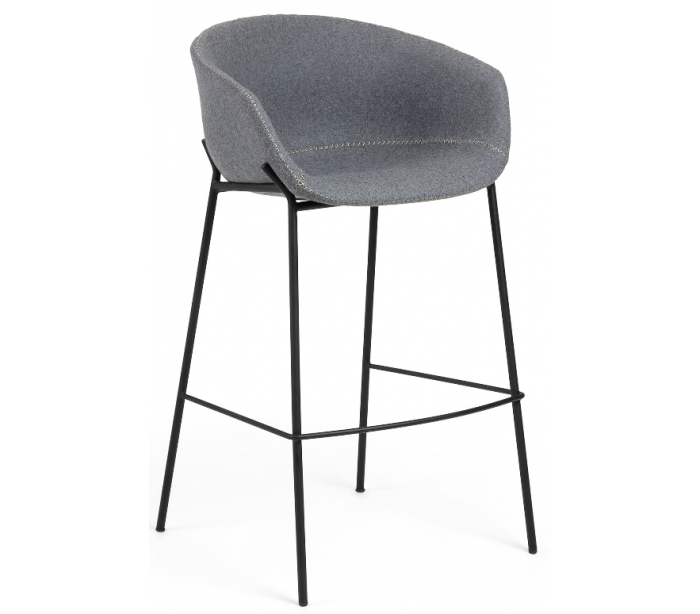 Barstol i et design fra LaForma. Barstolen er fremstillet i grå uld og med stel i sortlakeret stål og måler 99 cm i højden over ryggen og 60 x 53 cm i bredde og dybde.