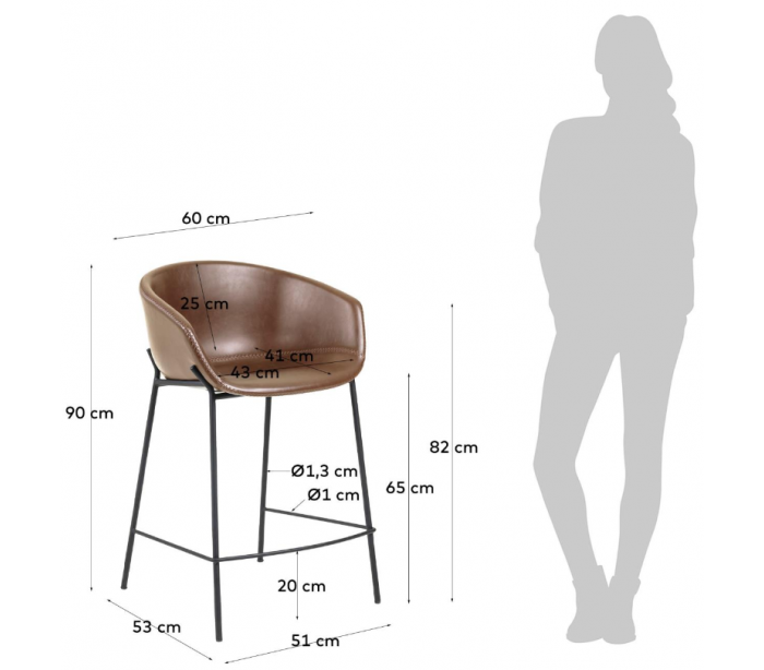 Barstol i et design fra LaForma. Barstolen er fremstillet i lysebrun PU-læder og med stel i sortlakeret stål og måler 90 cm i højden over ryggen og 60 x 53 cm i bredde og dybde.