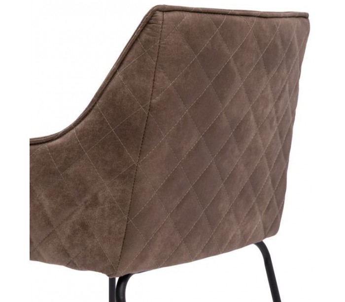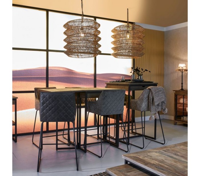 Riviera Maison barstol i et design af kaffefarvet pellini læder og sortlakeret metal. Barstolen måler 97 cm i højden over ryggen og 55 cm i bredden.