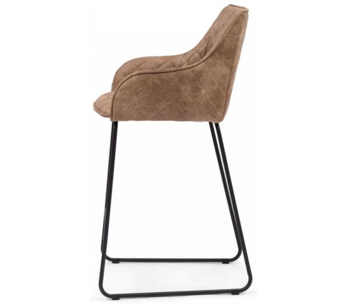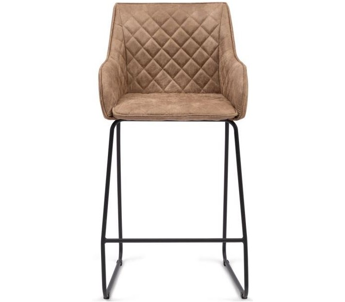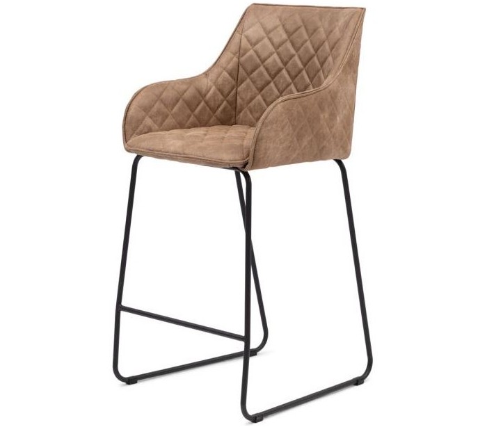 Riviera Maison barstol i et design af camel farvet pellini læder og sortlakeret metal. Barstolen måler 97 cm i højden over ryggen og 55 cm i bredden.