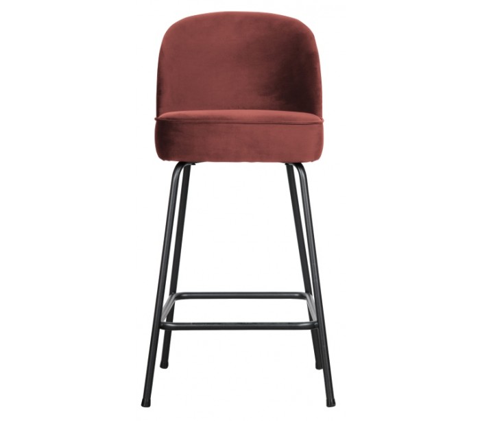 Barstol i et moderne design, fremstillet i kastanjefarvet velour og med ben i sortlakeret metal. Barstolen måler 89 cm i højden og 50 x 55 cm i bredde og dybde. Siddehøjden er 64 cm.