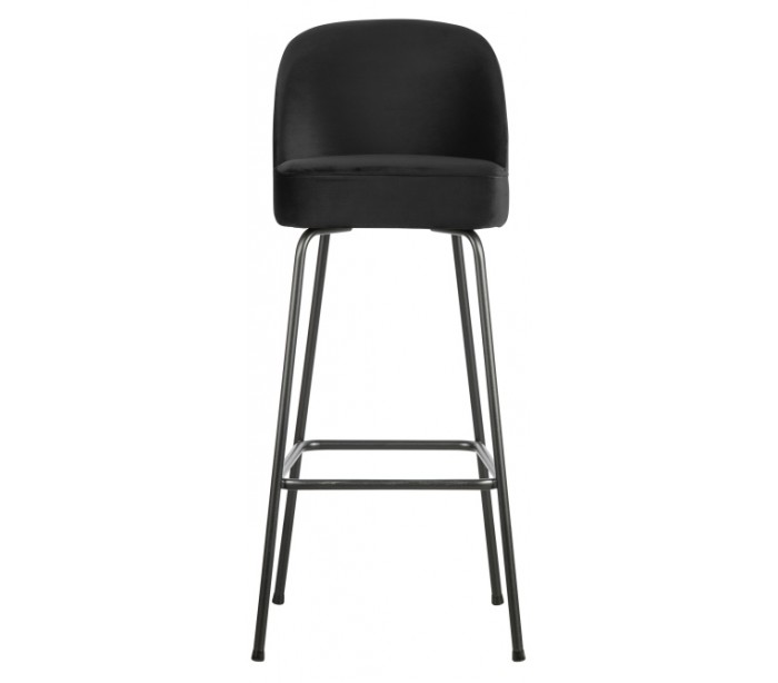 Barstol i et moderne design, fremstillet i sort velour og med ben i sortlakeret metal. Barstolen måler 103 cm i højden og 50 x 55 cm i bredde og dybde. Siddehøjden er 79 cm.