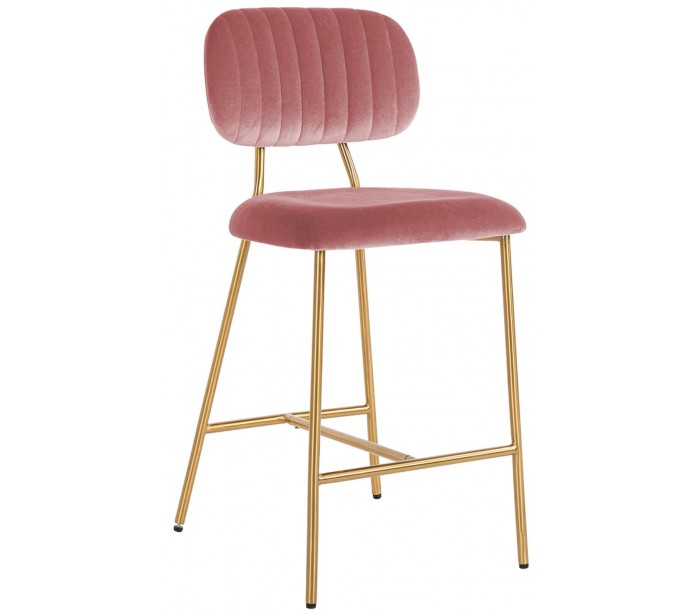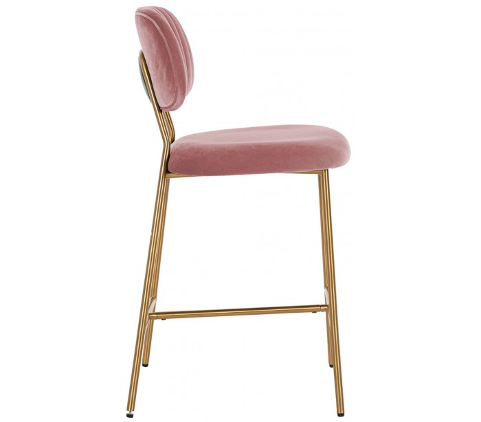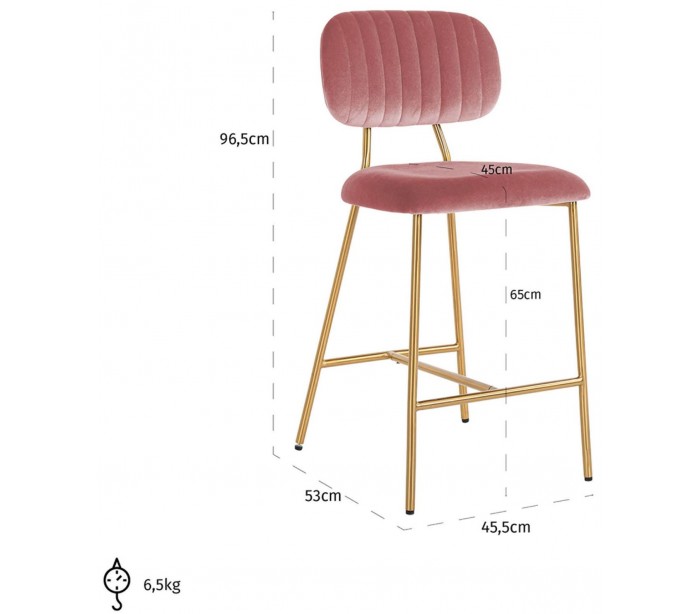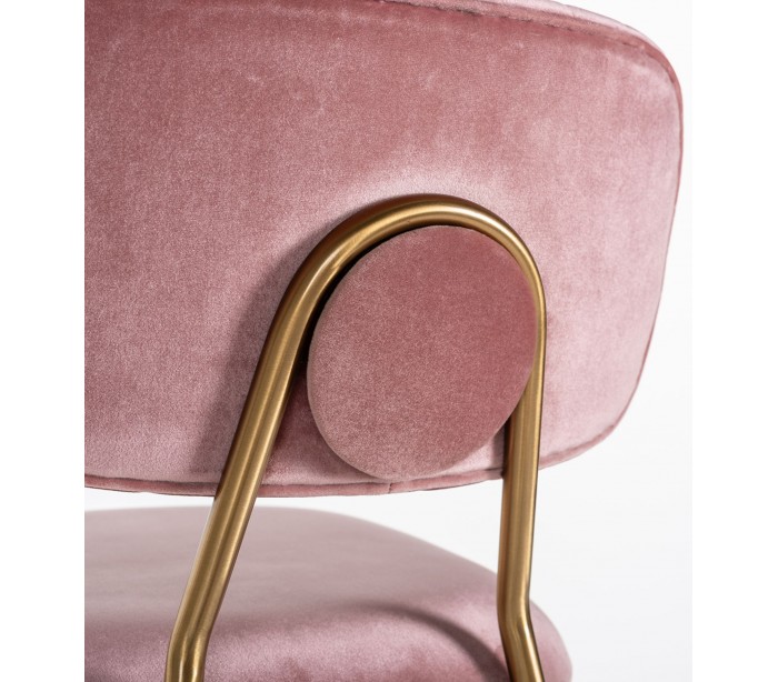 Barstol i et design fra hollandske Richmond Interiors. Stolen er fremstillet i pink 100% velour og med ben i børstet guldfarvet stål. Stolen måler 96,5 cm i højden over ryggen og 45,5 x 53 cm i bredde og dybde.