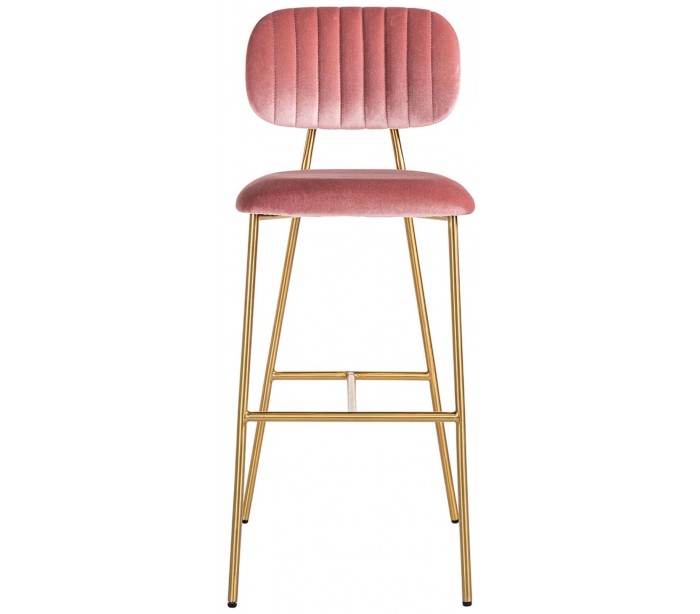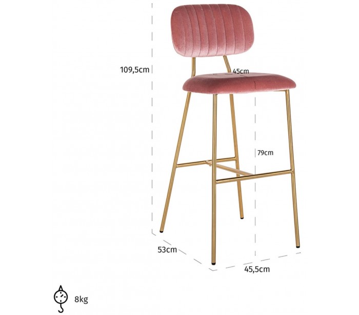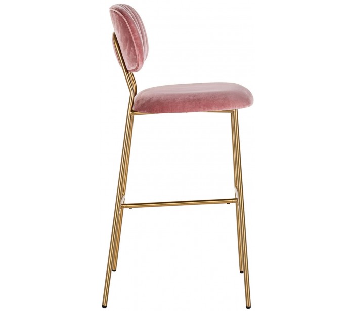 Barstol i et design fra hollandske Richmond Interiors. Stolen er fremstillet i pink 100% velour og med ben i børstet guldfarvet stål. Stolen måler 109,5 cm i højden over ryggen og 45,5 x 53 cm i bredde og dybde.
