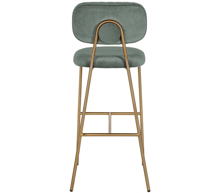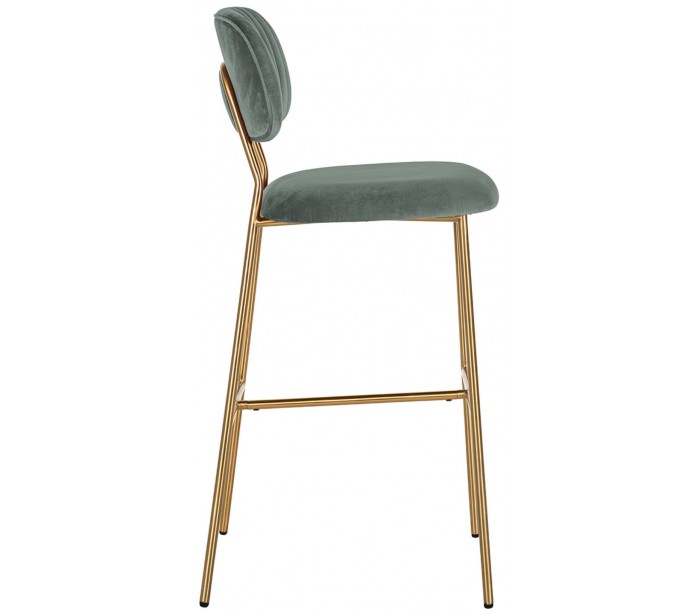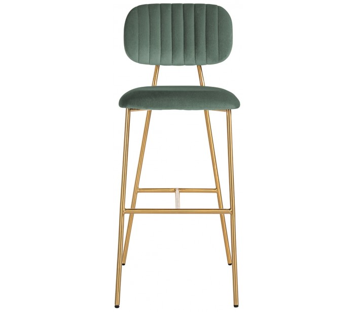 Barstol i et design fra hollandske Richmond Interiors. Stolen er fremstillet i jadegrøn 100% velour og med ben i børstet guldfarvet stål. Stolen måler 109,5 cm i højden over ryggen og 45,5 x 53 cm i bredde og dybde.