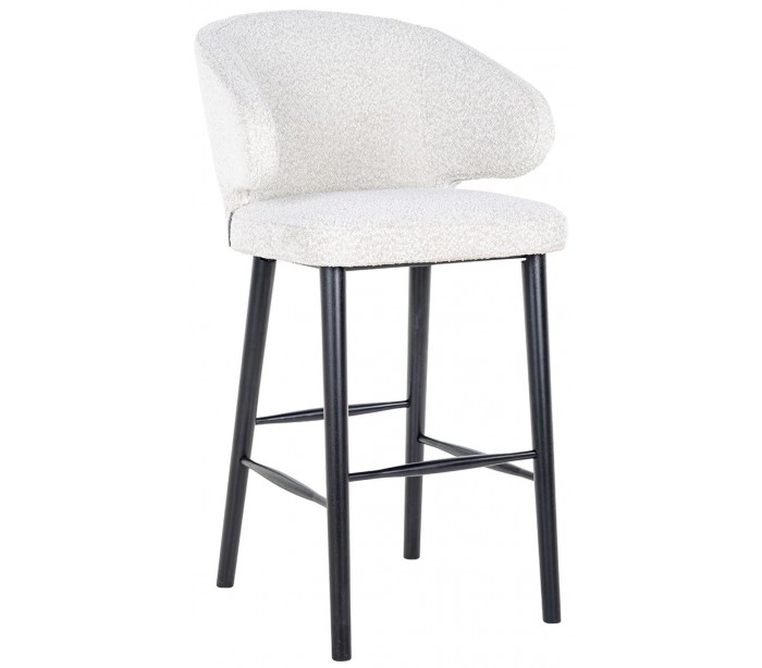 Barstol i et design fra hollandske Richmond Interiors. Stolen er fremstillet i hvid polyester og med ben i sortlakeret bøgetræ med tydelige træstruktur. Stolen måler 106 cm i højden over ryggen og 50 x 62 cm i bredde og dybde.