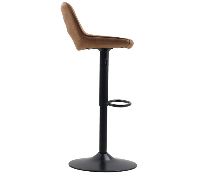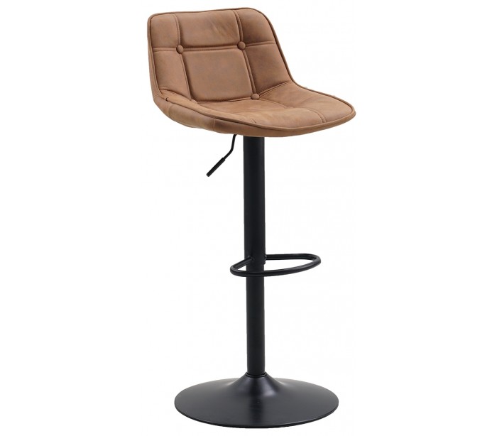 Sæt med 2 barstole i et industrielt design, fremstillet med sæde i cognacfarvet mikrofiber og stel i sortlakeret metal. Stolene måler 87 - 107 cm i højden over ryggen og med siddehøjde på 59 - 79 cm.