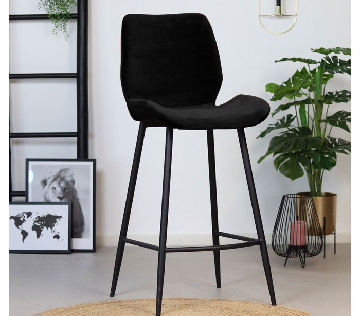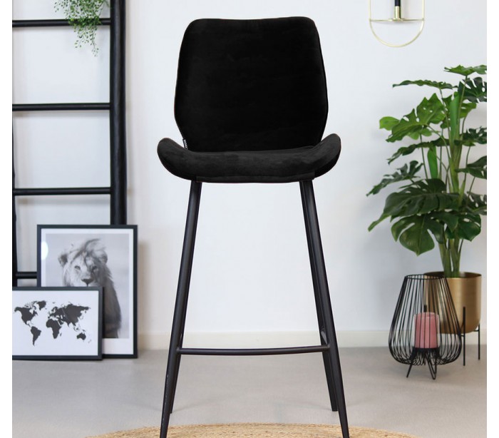 Miami Barstol i velour H112 cm - Sort/Sort