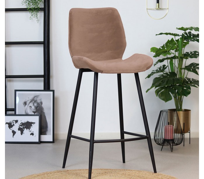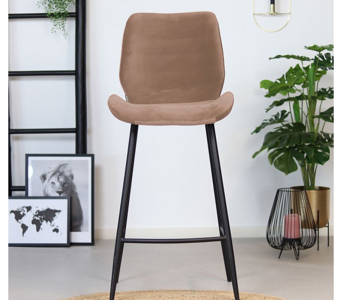 Miami Barstol i velour H112 cm - Sort/Taupe