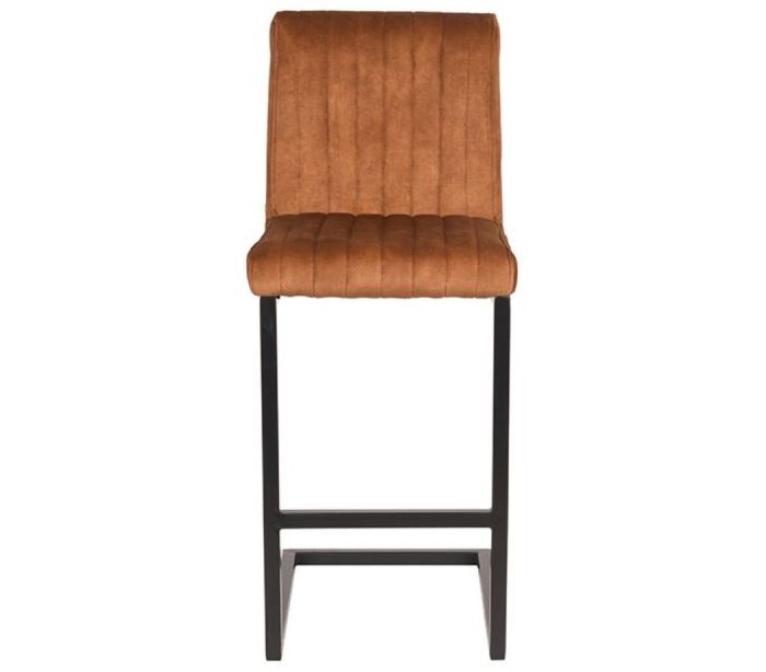 Milo barstol udført i et moderne design, fremstillet i okkerfarvet velour og med stel i sortlakeret metal. Barstolen måler 100 cm i højden og med siddehøjde på 66 cm.
