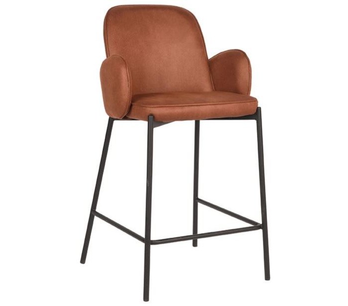 Jari barstol udført i et moderne design, fremstillet i cognacfarvet microfiber og med stel i sortlakeret metal. Barstolen måler 94 cm i højden og med siddehøjde på 65 cm.