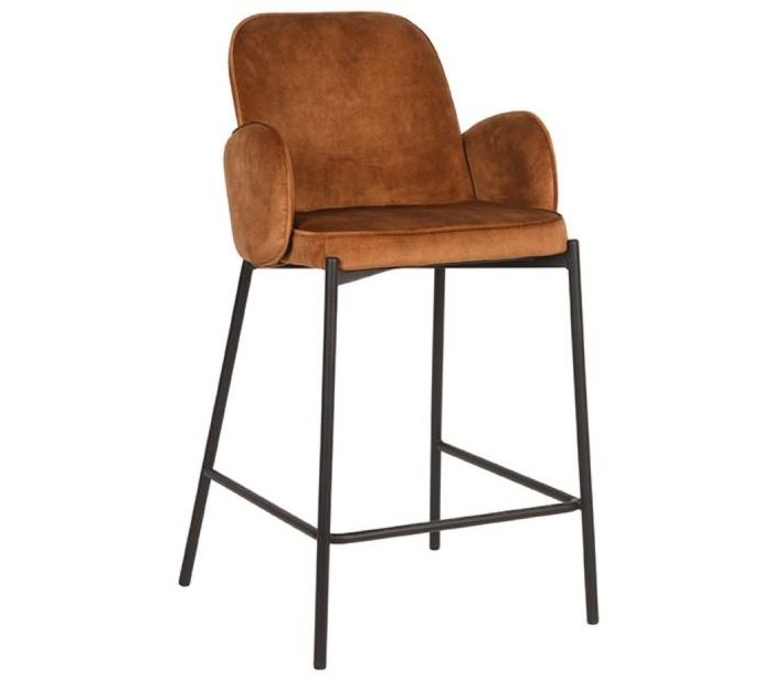 Jari barstol i velour og metal H94 cm - Sort/Okker