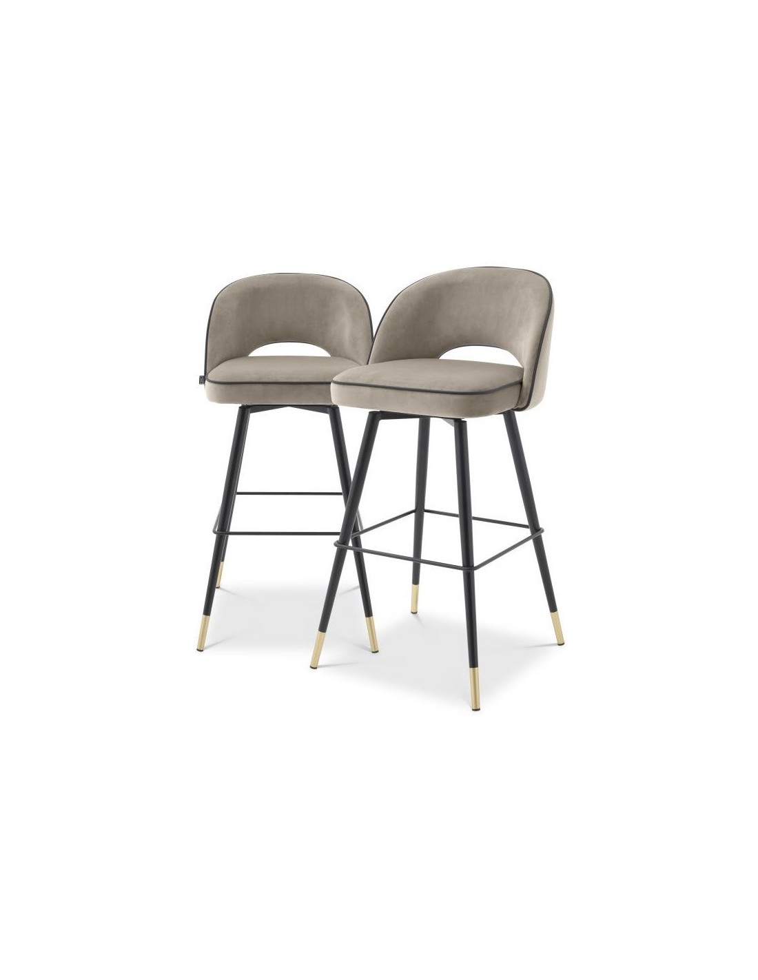 2 x Cliff barstole i velour og stål H103 cm - Sort/Gråbrun