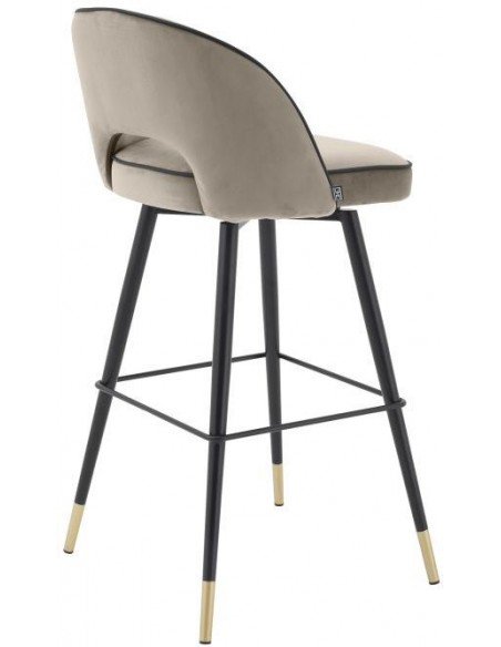 Eichholtz Cliff barstole, udført i et design af gråbrun velour og med ben i sortlakeret stål med detaljer i messing. Stolene måler 103 cm i højden over ryggen og 51 x 52 cm i bredde og dybde. Siddehøjden er 78,5 cm. Sættet består af 2 stole.
