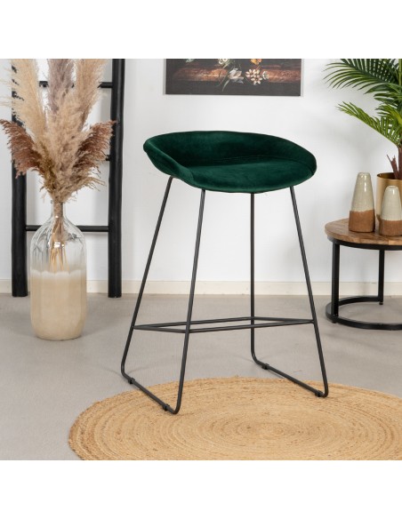 Oslo Barstol i velour H66 cm - Sort/Grøn