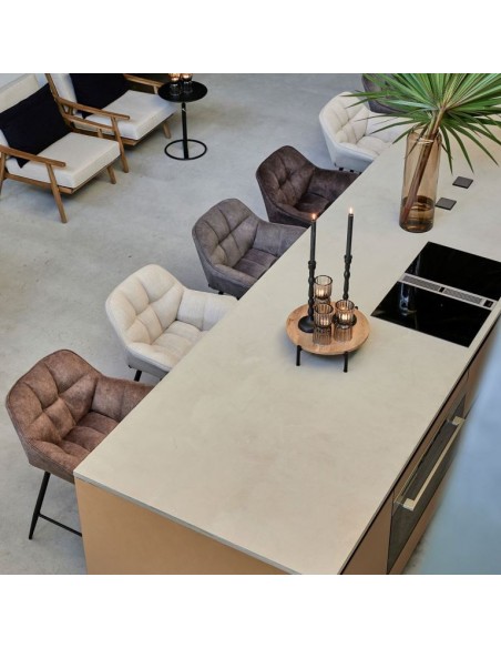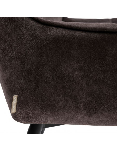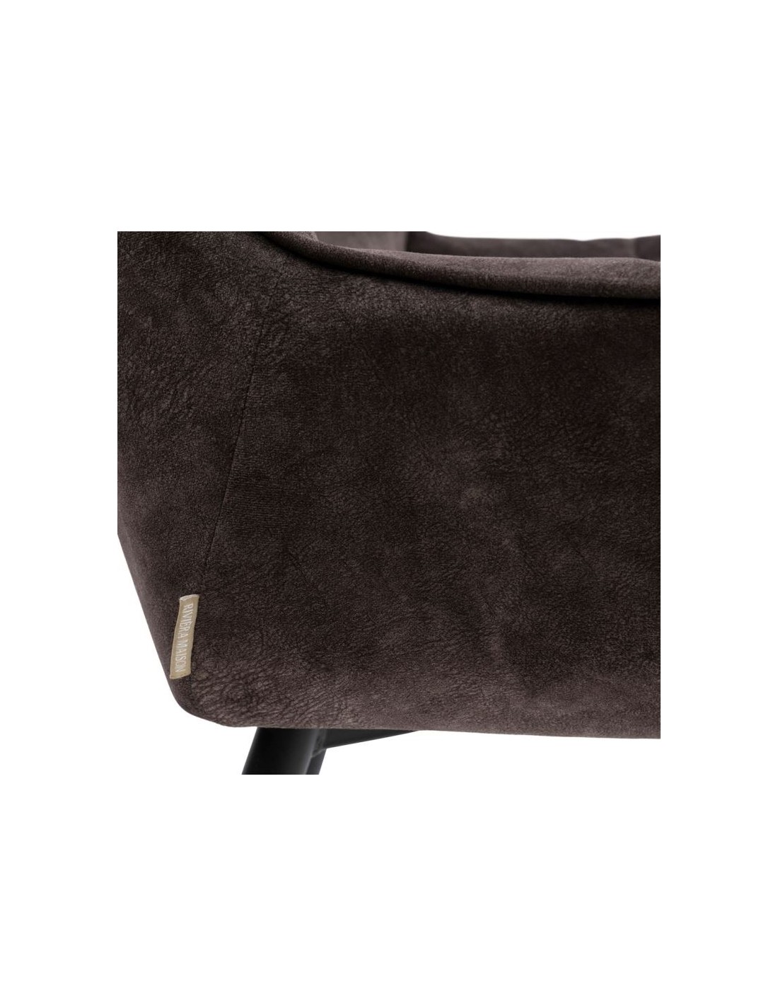 Riviera Maison barstol i et design af kakaofarvet polyester og sortlakeret metal. Stolen måler 96,5 cm i højden over ryggen og 67 cm i siddehøjde.